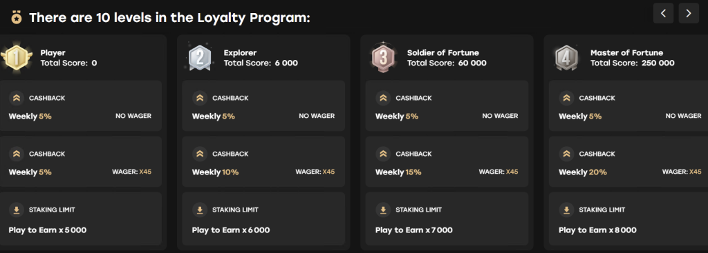 The purpose of these loyalty tiers is to ensure the best possible player experience and maximum value for every dollar wagered on the platform.